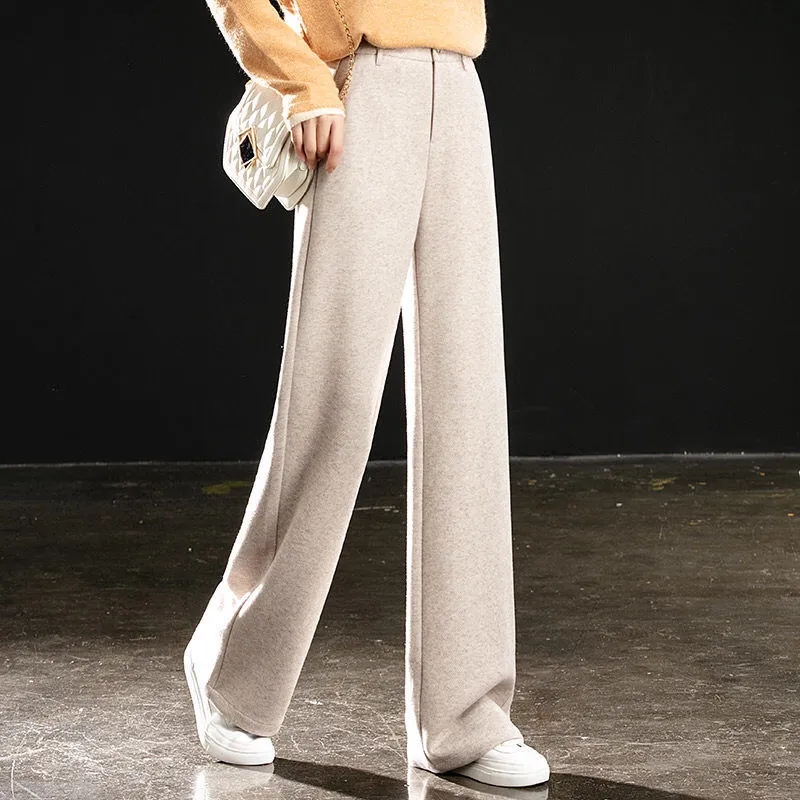 Herringbone Wool Fashion Solid High Waist Straight Wide Leg Pants