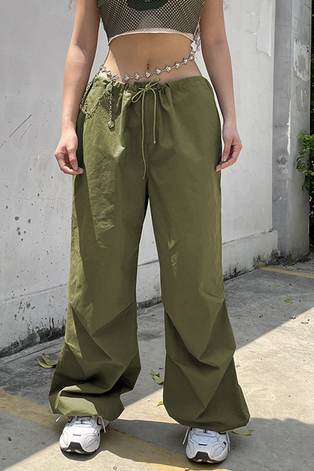 Women's Casual Retro Solid Color Low Waist Drawstring Loose Cargo Pants