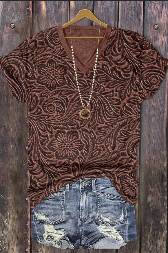 3D Floral Print V-Neck T-Shirt
