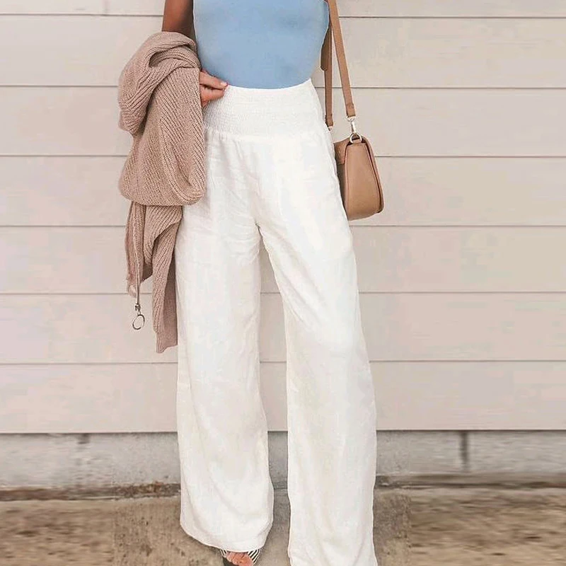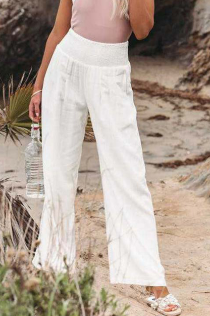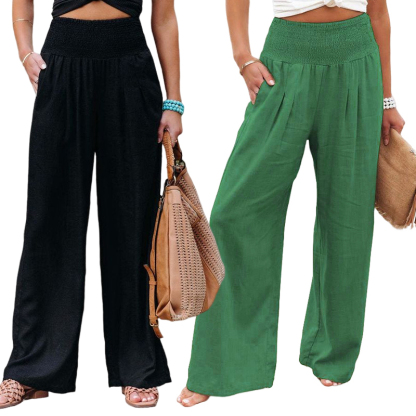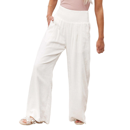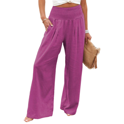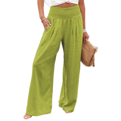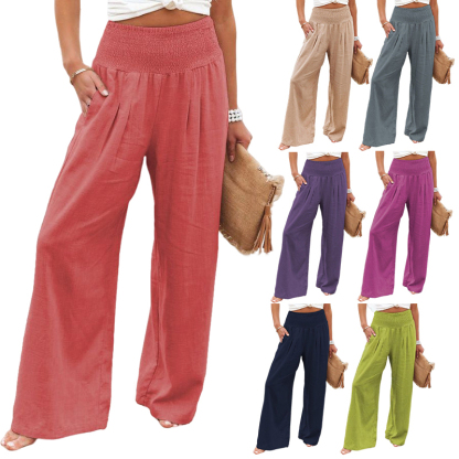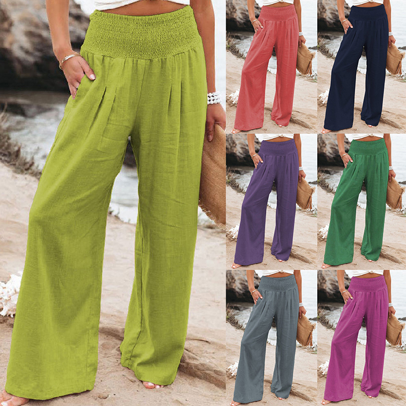Cotton Linen Elastic Waist Trousers Loose Casual Wide Leg Fashion Pant
