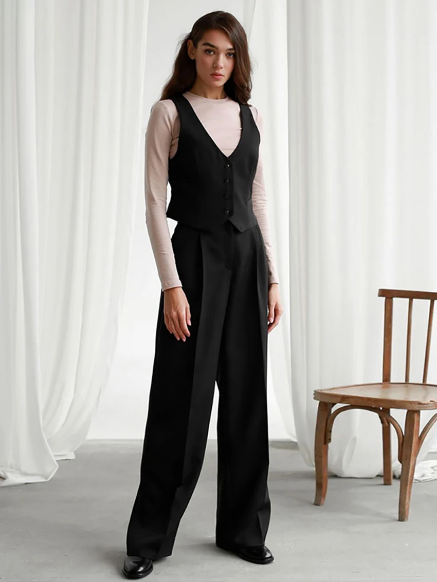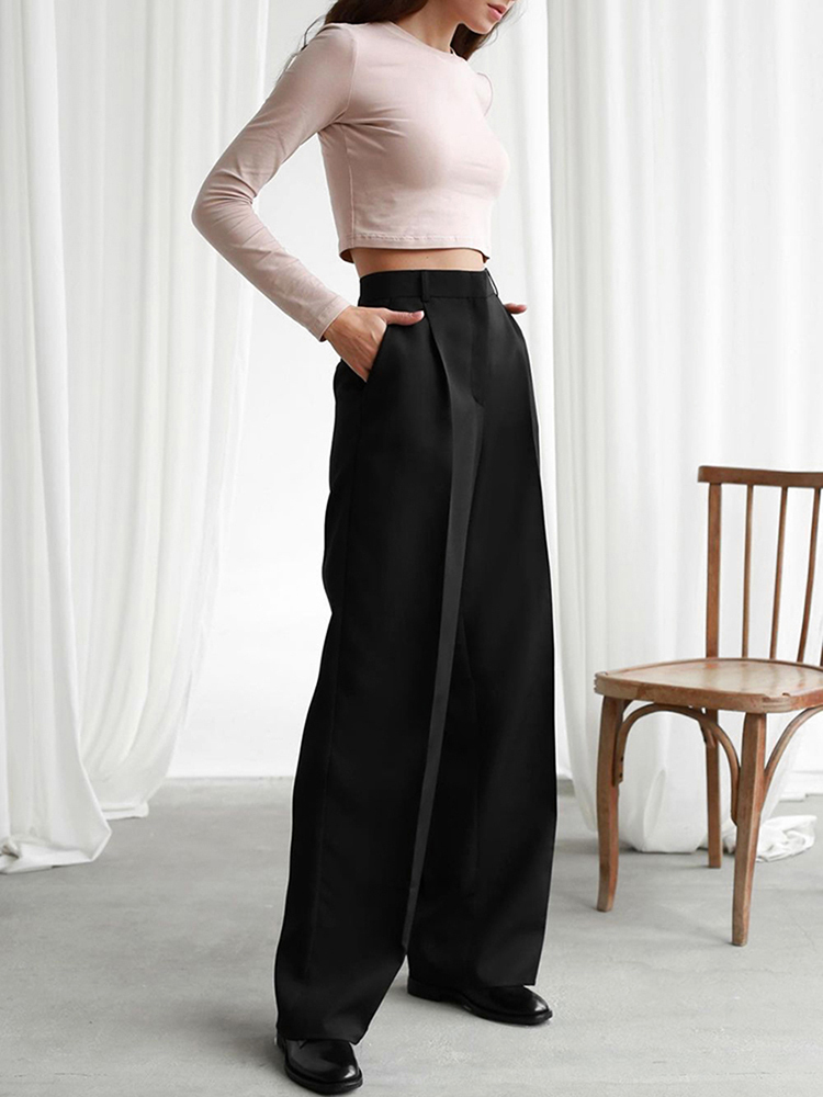 Elegant Wide Leg Pants High Waist Fashion Lady Pants