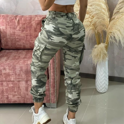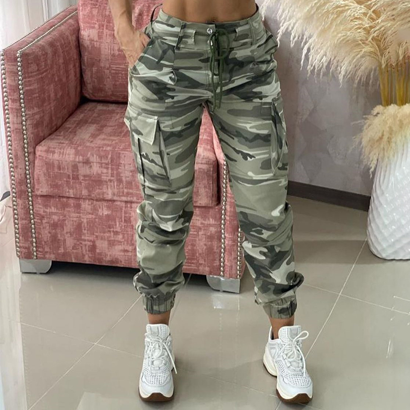 Fashion Ladies Casual Daily Camouflage Print Drawstring Pocket Cargo Pants