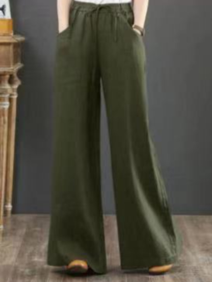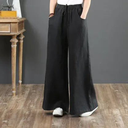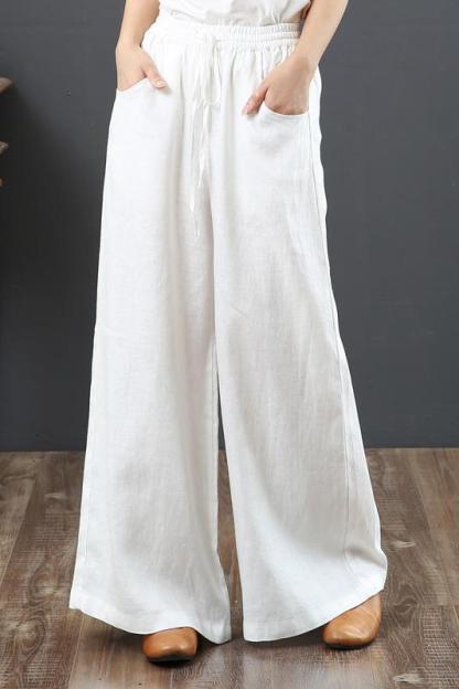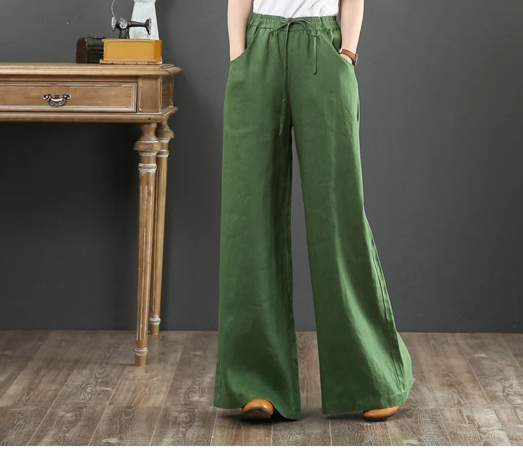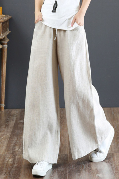 Fashion Solid Color Harem Linen Bloomers Casual Loose Wide Leg Pants