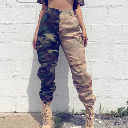 Ladies Jogging Patchwork Camo High Waist Cargo Pants