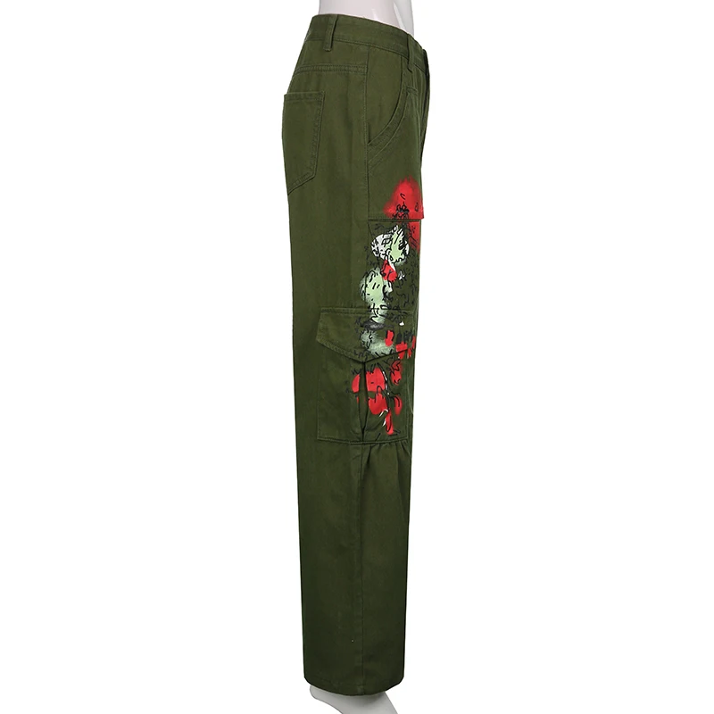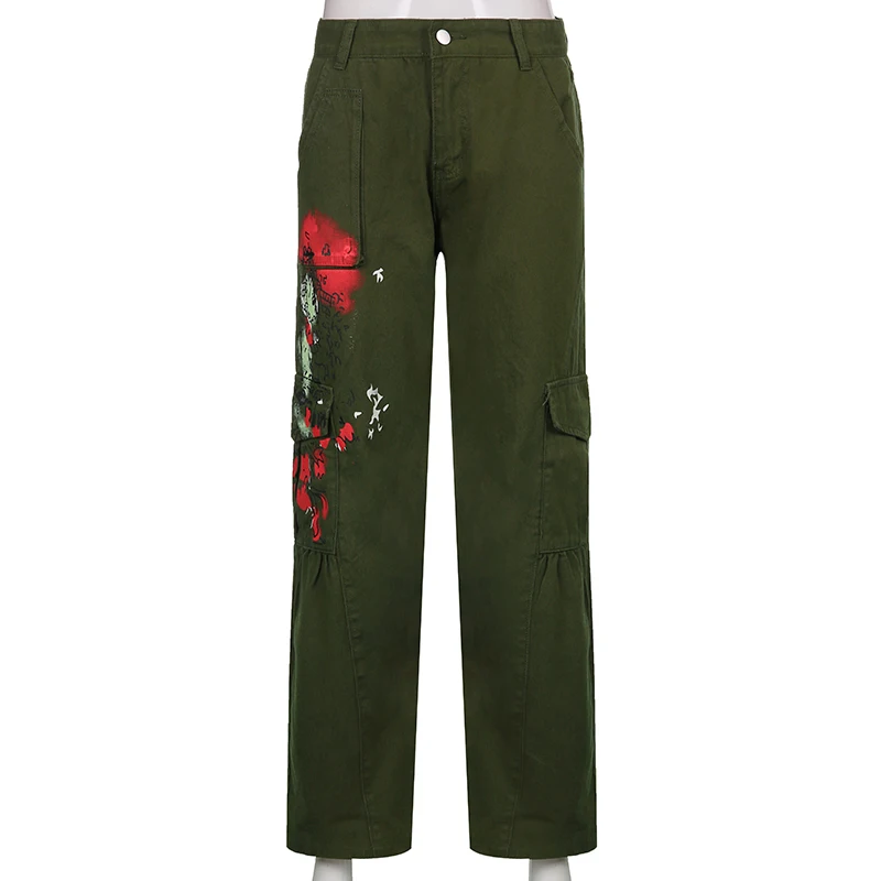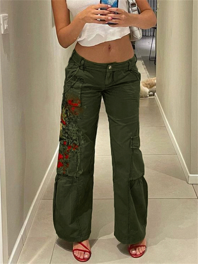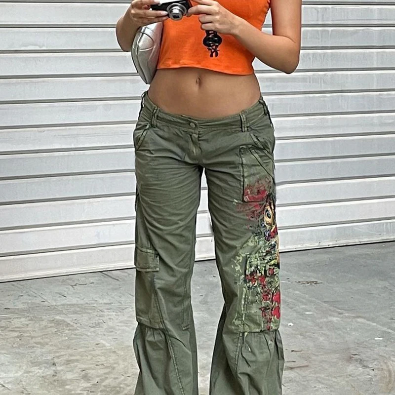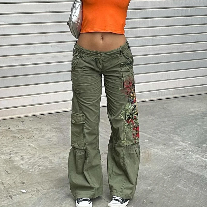 Print Low Waist Vintage Pockets Punk Streetwear Loose Pants