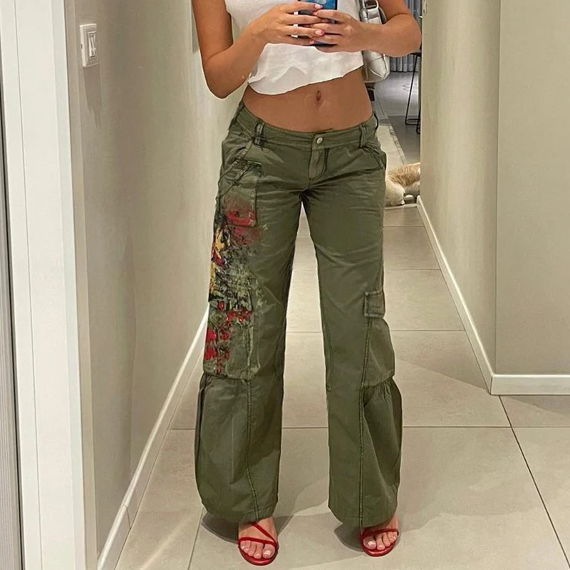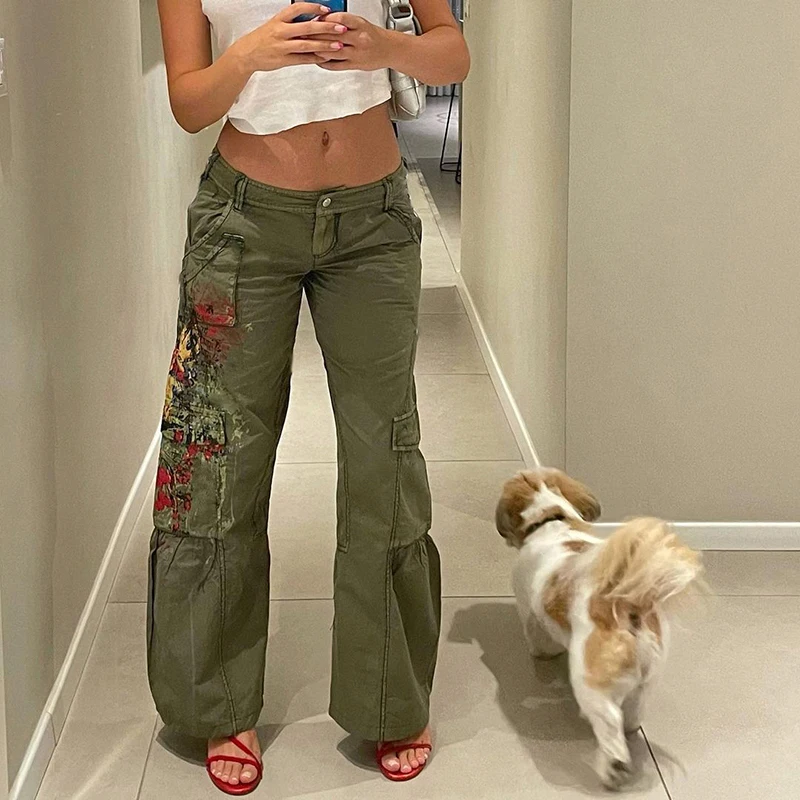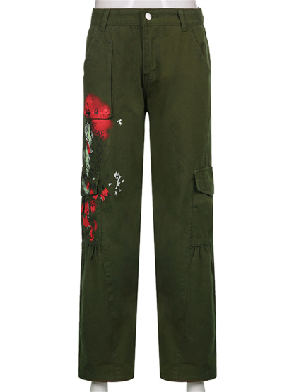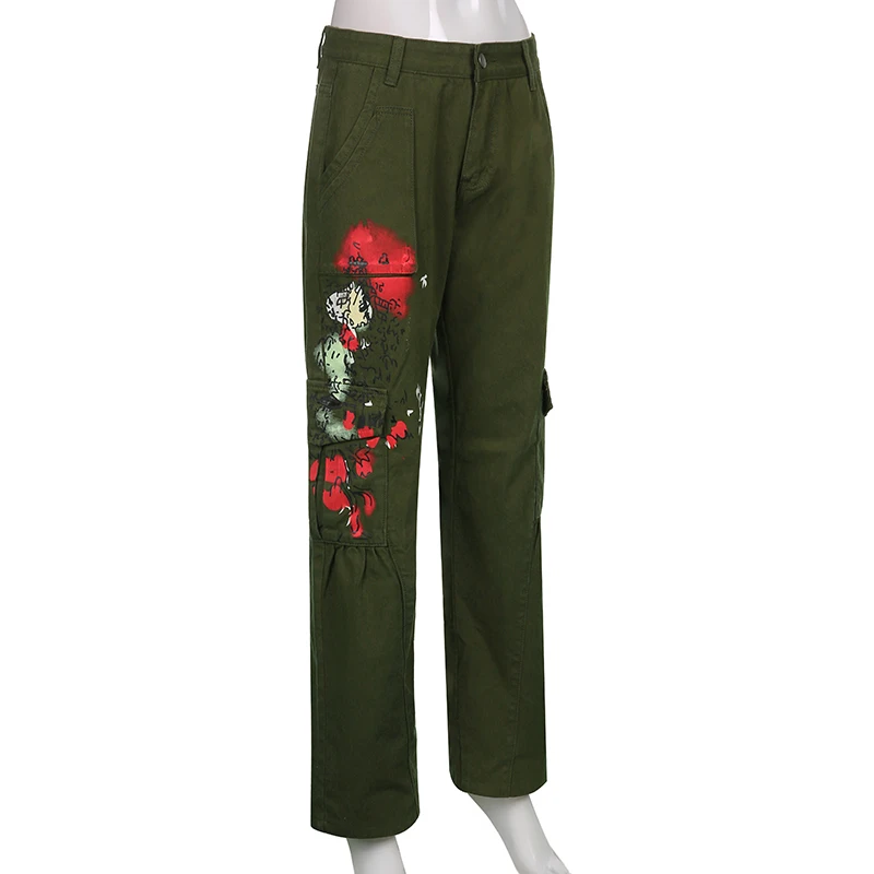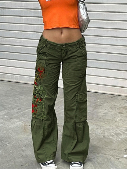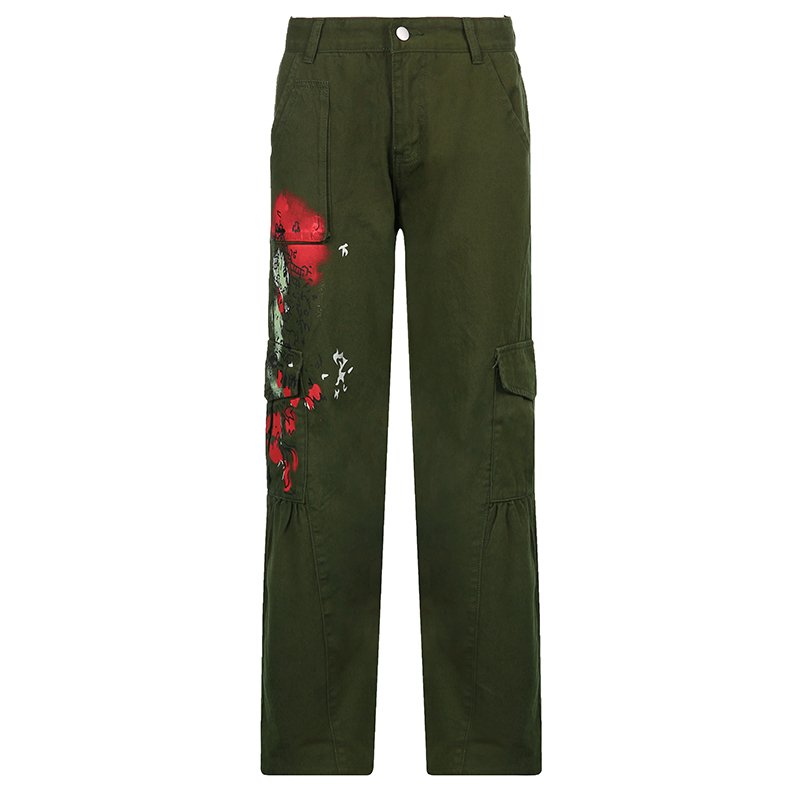 Print Low Waist Vintage Pockets Punk Streetwear Loose Pants