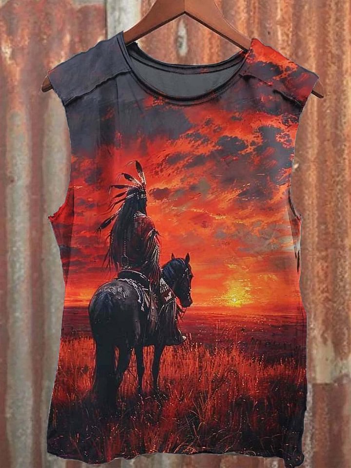 Unisex Red Sunset Art Print Short Sleeve Casual T-Shirt