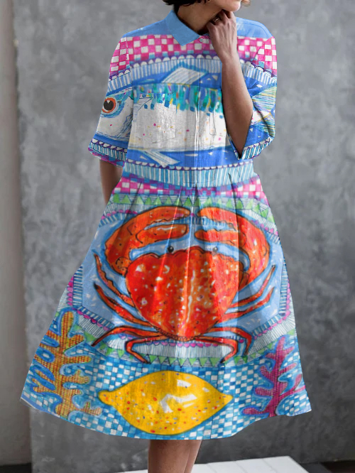 Vacation Ocean World Print Casual Pocket Half Sleeve Dress