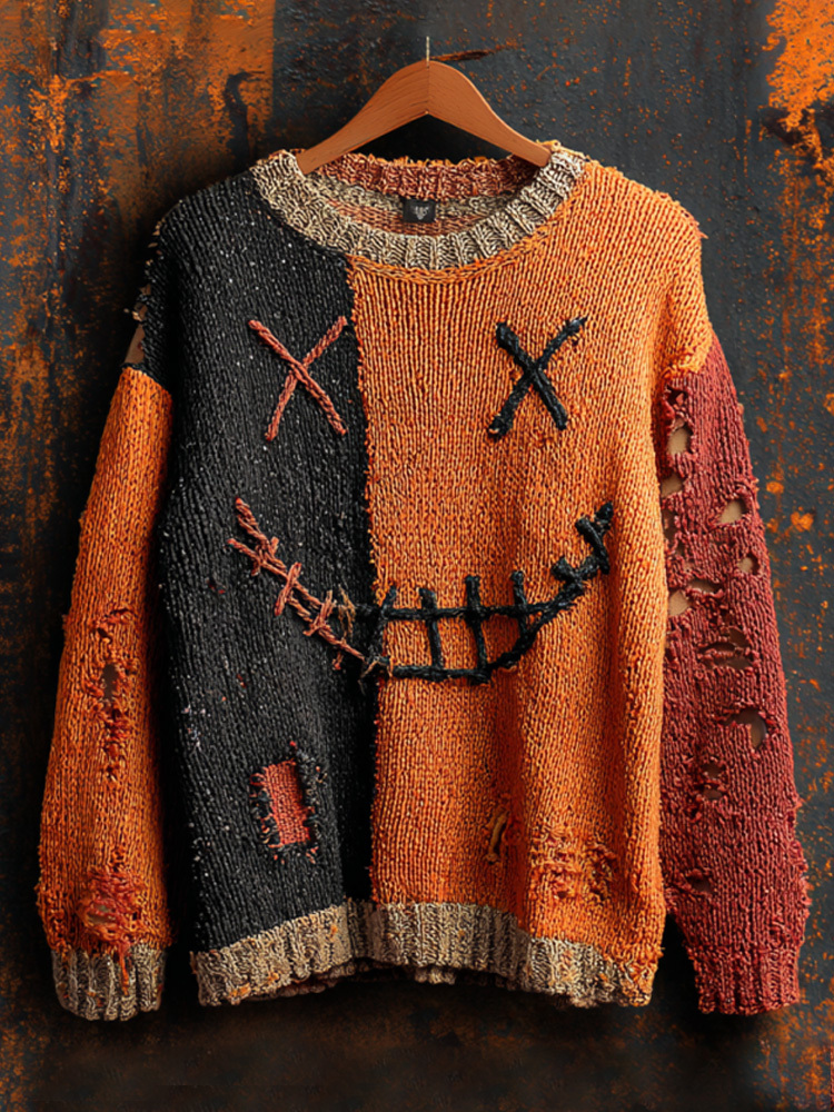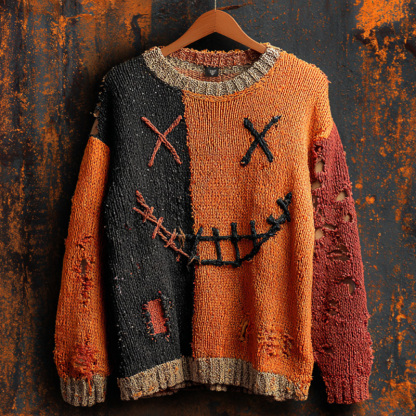 Vintage Halloween Ghost Face Embroidered Sweater