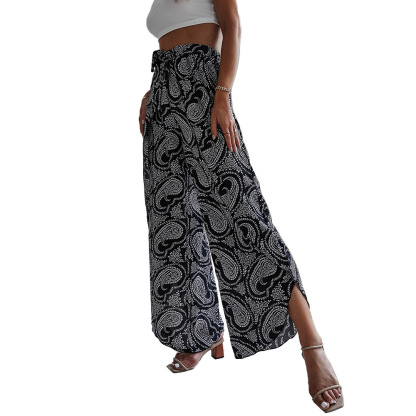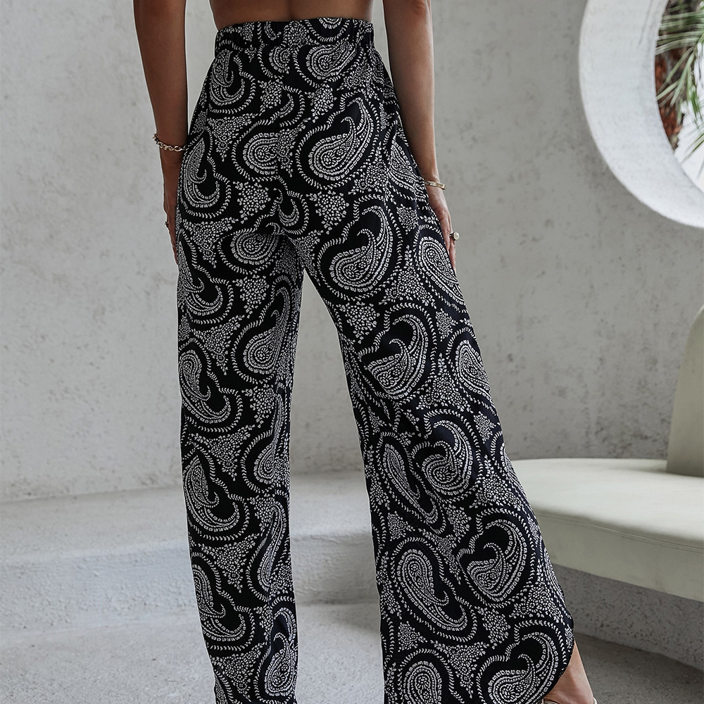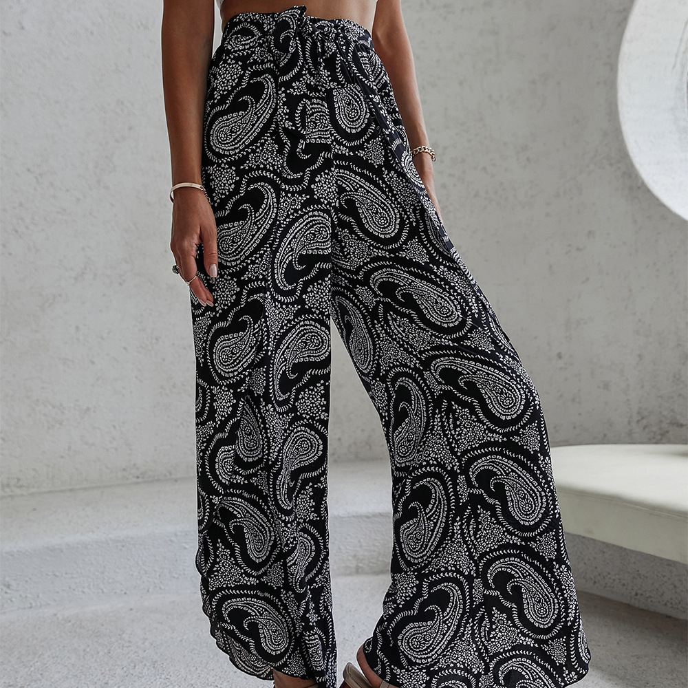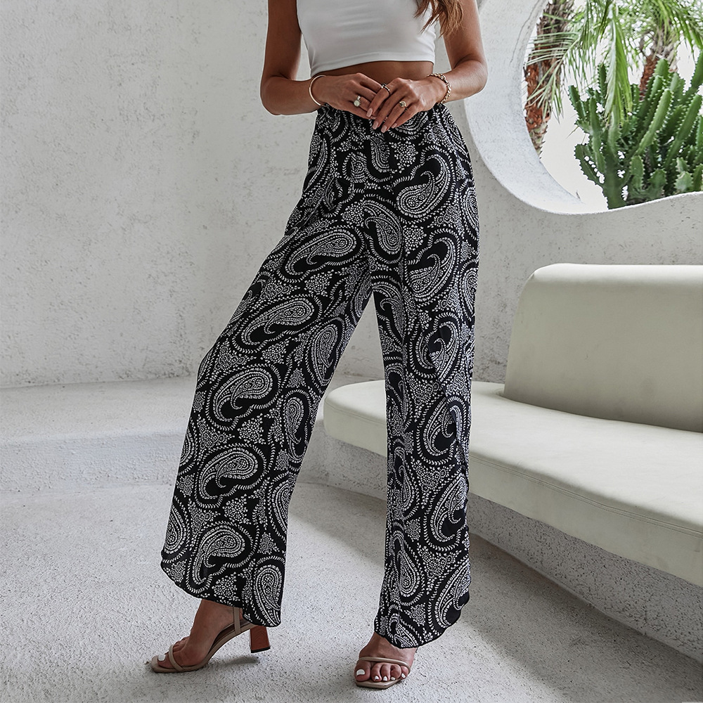 Women Leisure Printing High Waist Beach Wide Leg Pants