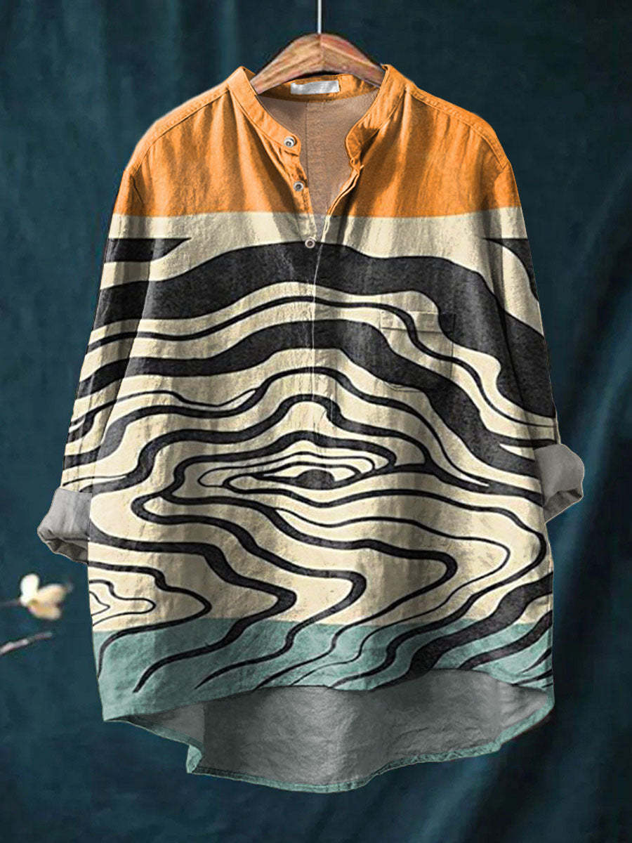Women's Abstract Pattern Art Print Casual Long Sleeve Comfortable Cotton Shirt