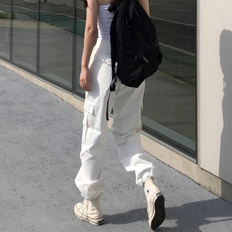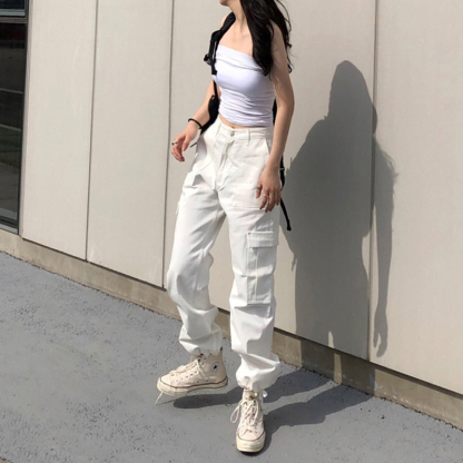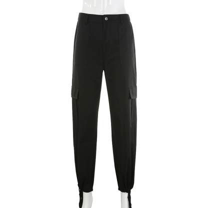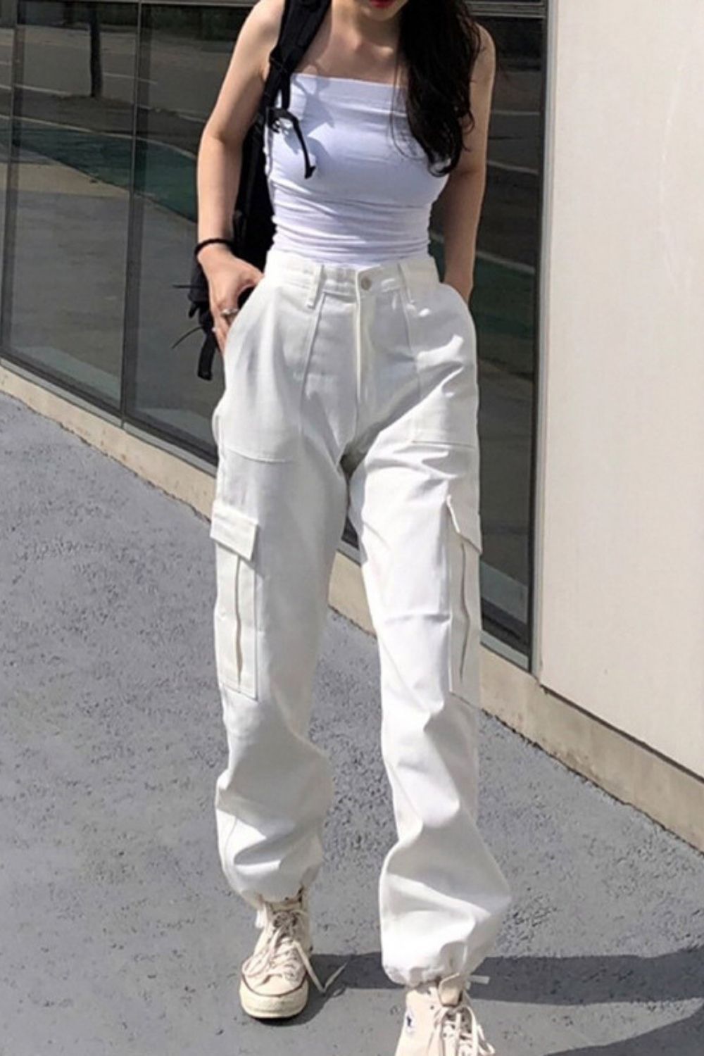 Women's Casual Solid Color Loose High Waist Cargo Pants