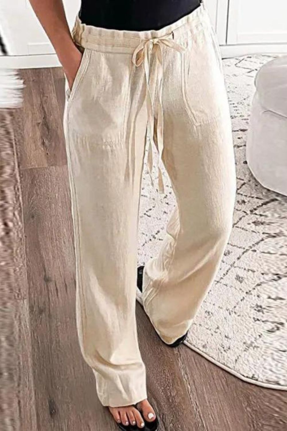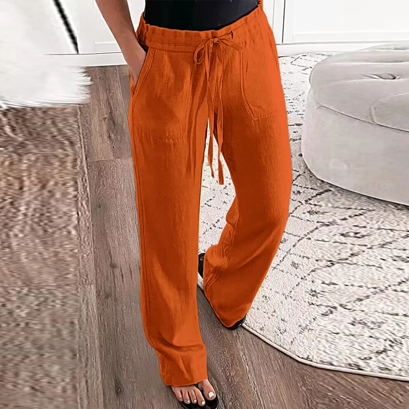 Women's Fashion Casual Simple Solid Color Breathable Drawstring Cotton Linen Trousers