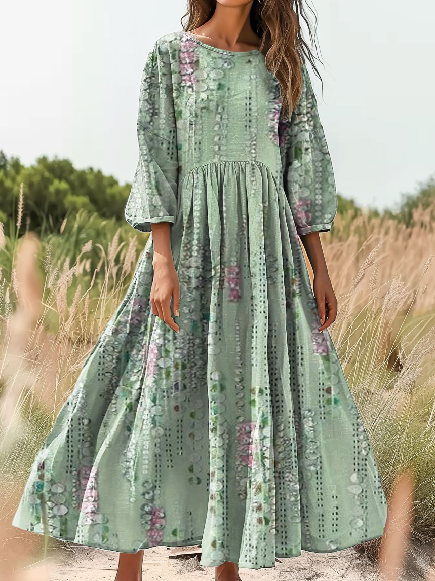 Women's Floral Texture Art Print Flowy Cotton Crew Neck Dress