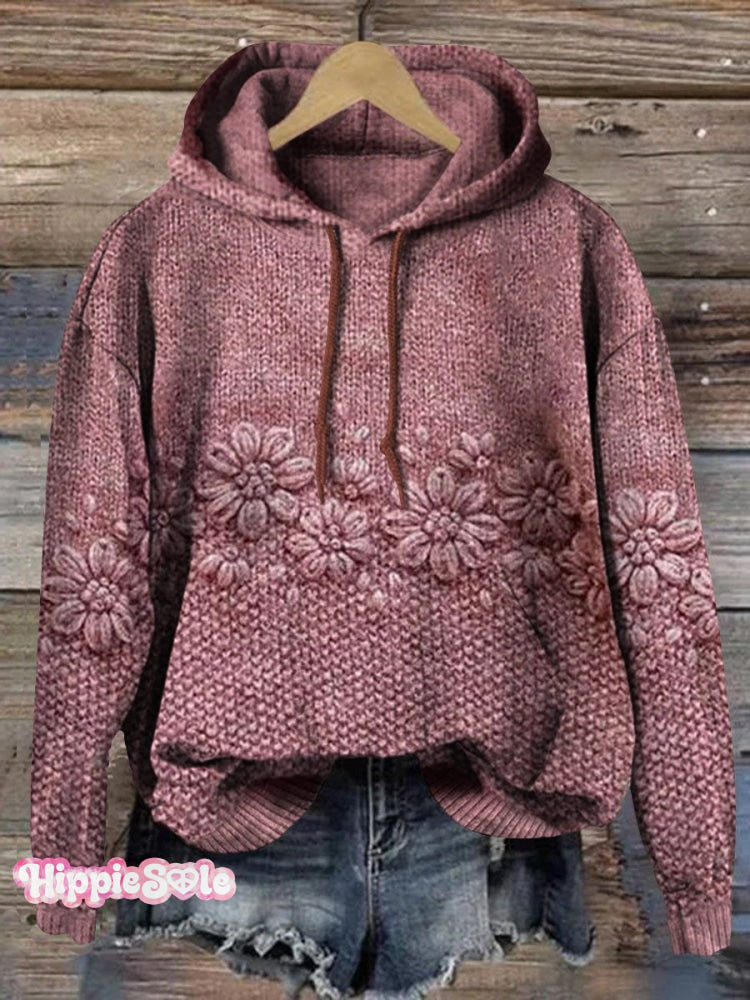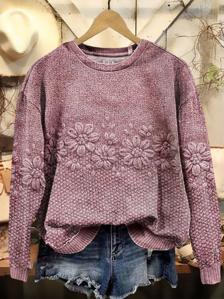 Women's Floral Texture Art Print Pattern Knit Pullover Sweater