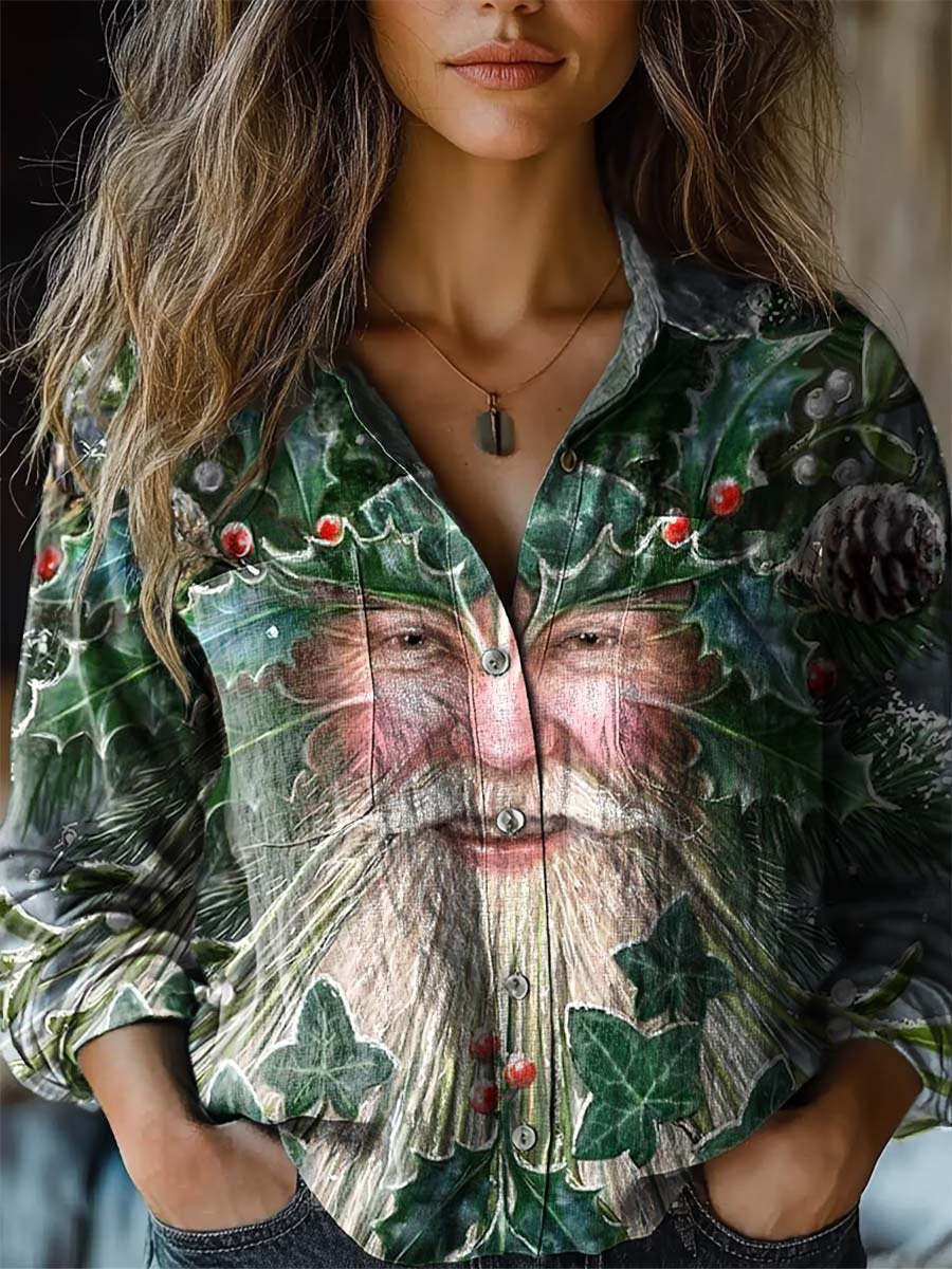 Women's Forest Lord Fantasy Art Print Casual Long Sleeve Comfortable Cotton Shirt