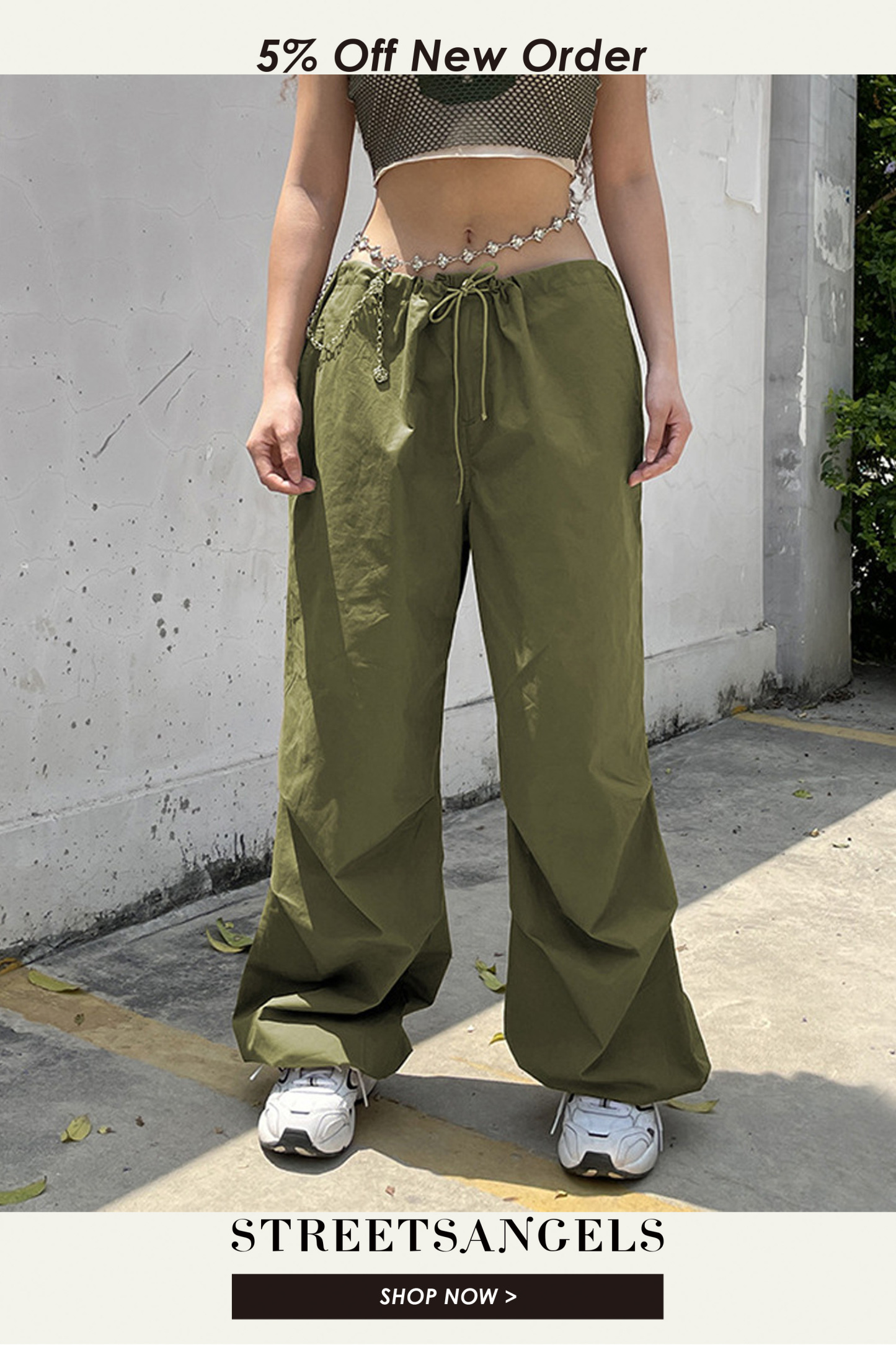 Women's Low Waist Drawstring Pocket Loose Wide Leg Retro Umbrella Pants