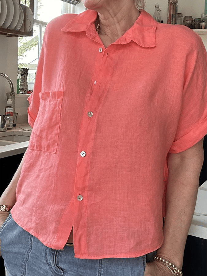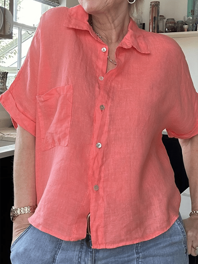 Women's Solid Color Casual Loose Open Pocket Button-Down Shirt