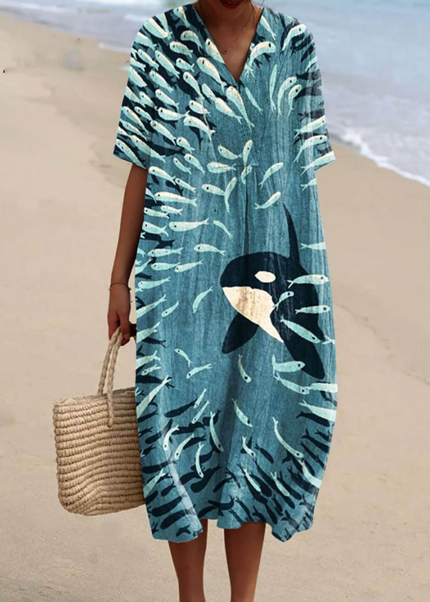 Women's Vintage Fish Killer Whale Art Print Flowy Dress