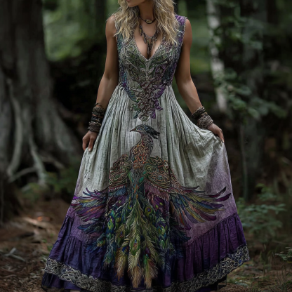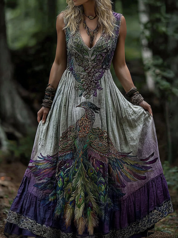 Women's Vintage Viking Celtic Knot Phoenix Art Pattern Sleeveless Dress