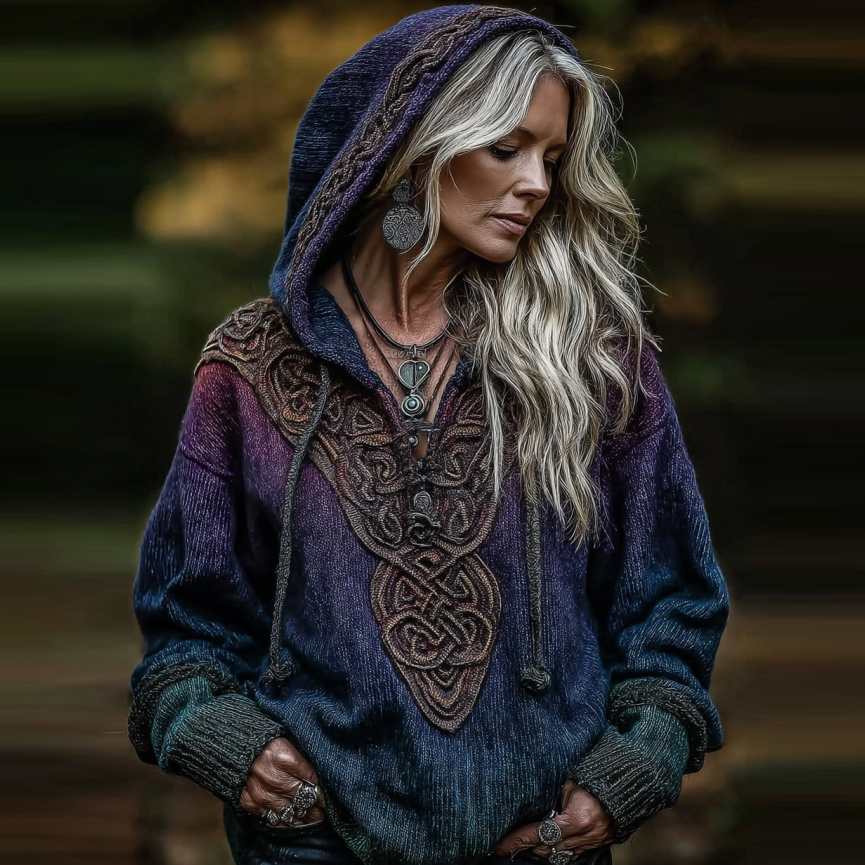 Women's Viking Celtic Knot Art Knitted Warm Hooded Sweater