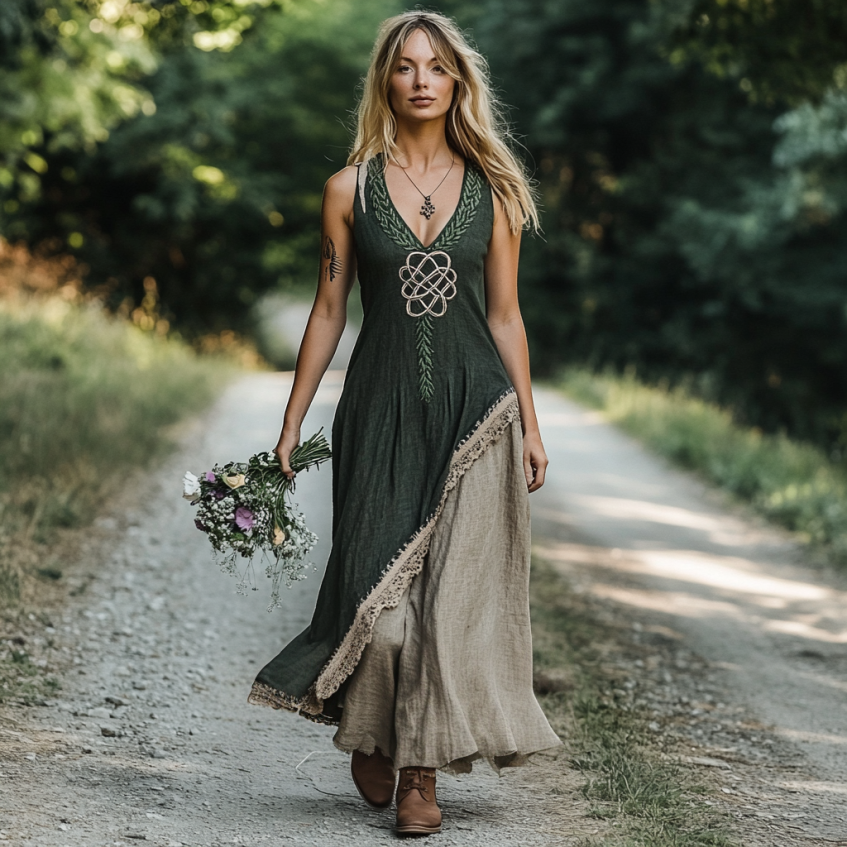 Vintage Celtic Mythology Gradient Lace Linen Tank Dress