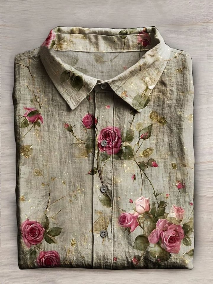Flowers Print Casual Long Sleeves Cotton Shirt