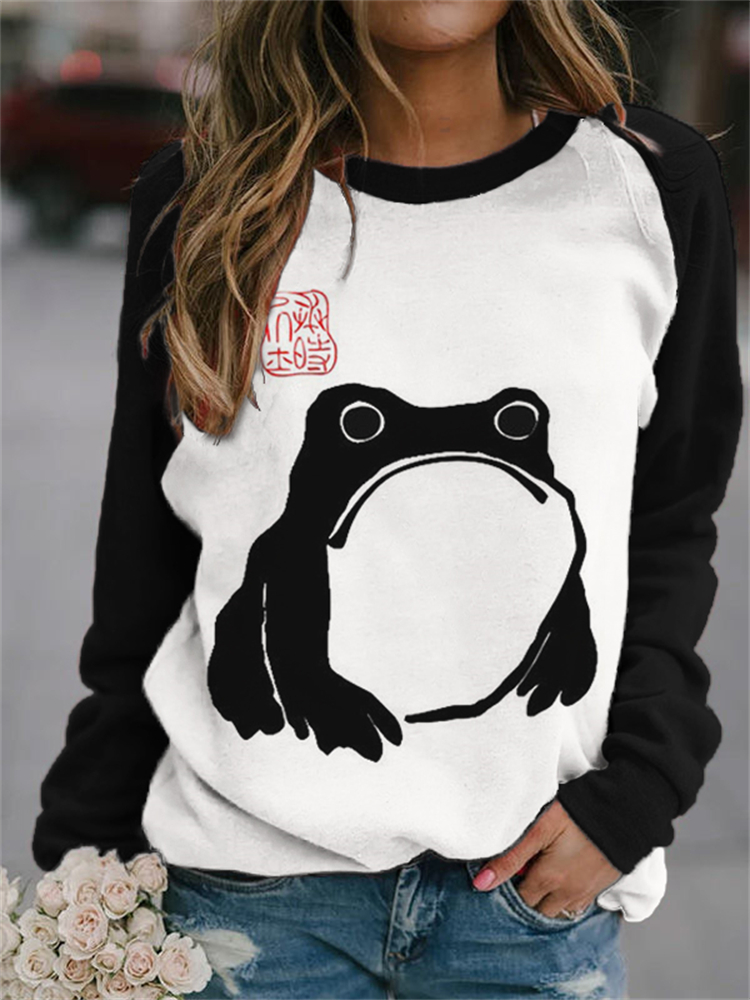Frog Japanese Art Contrast Color Sweatshirt