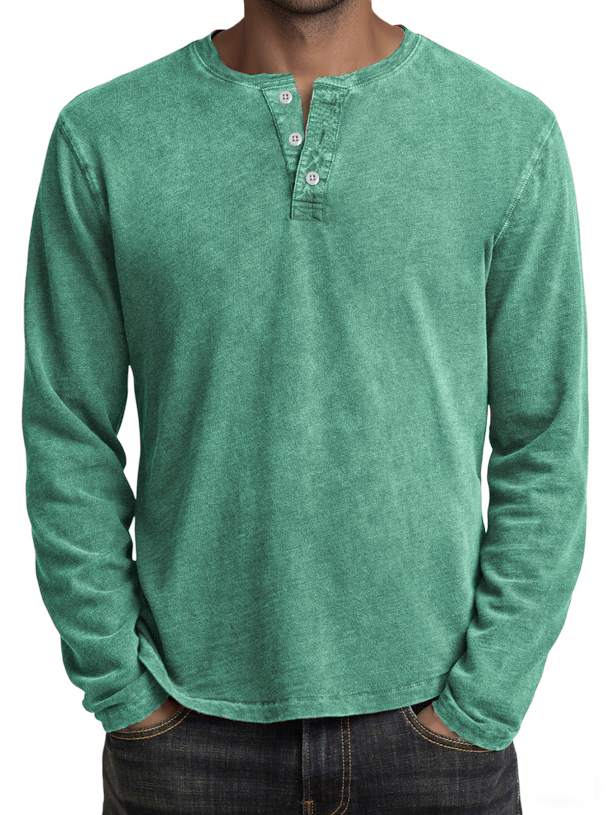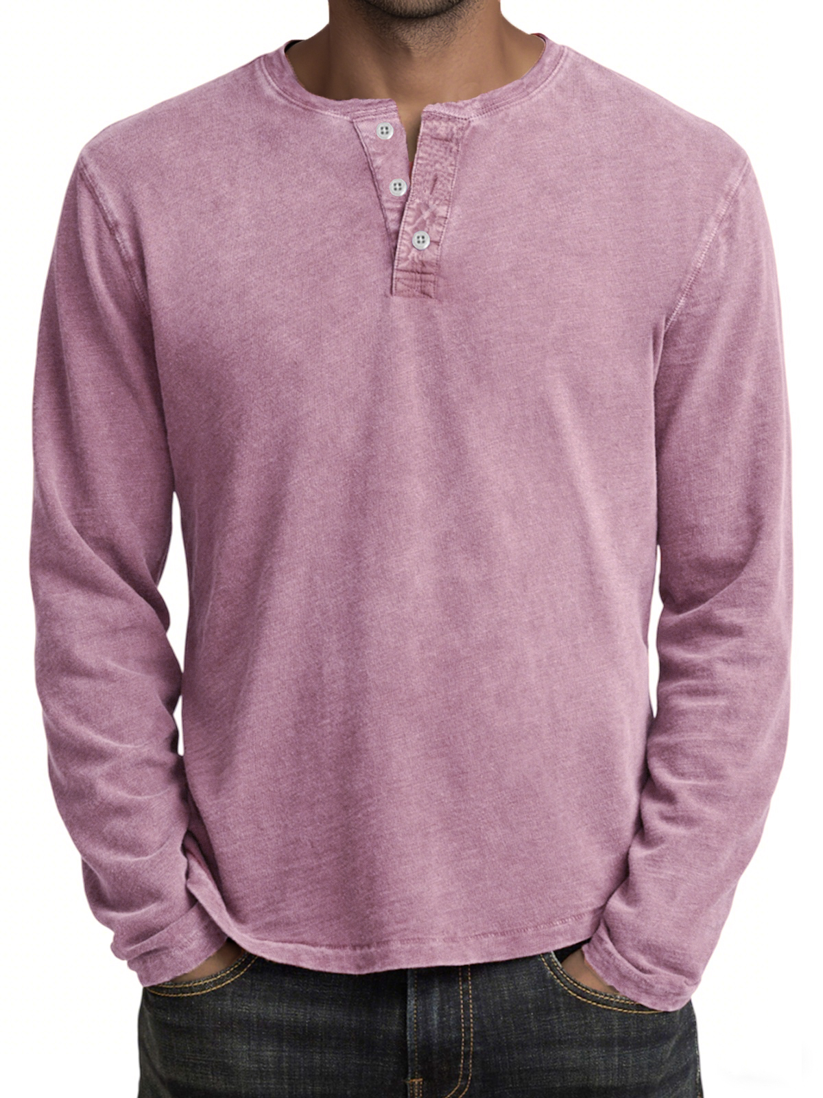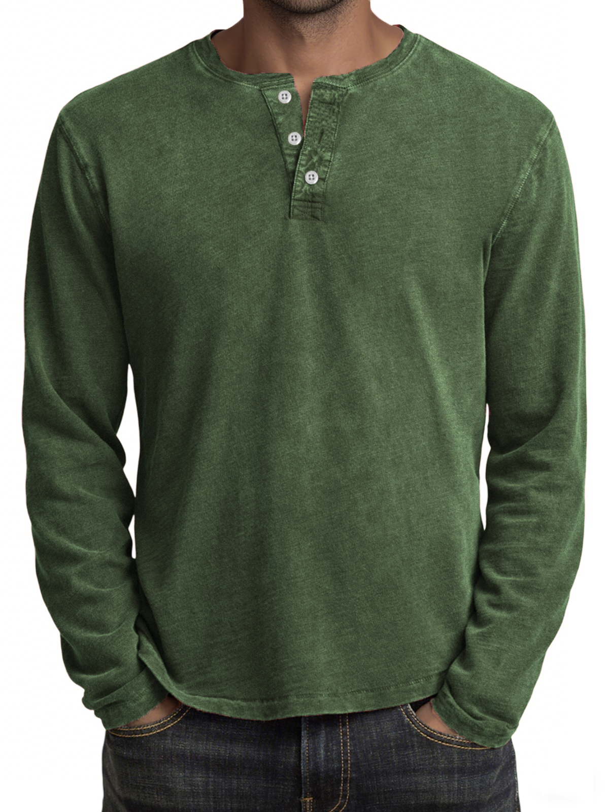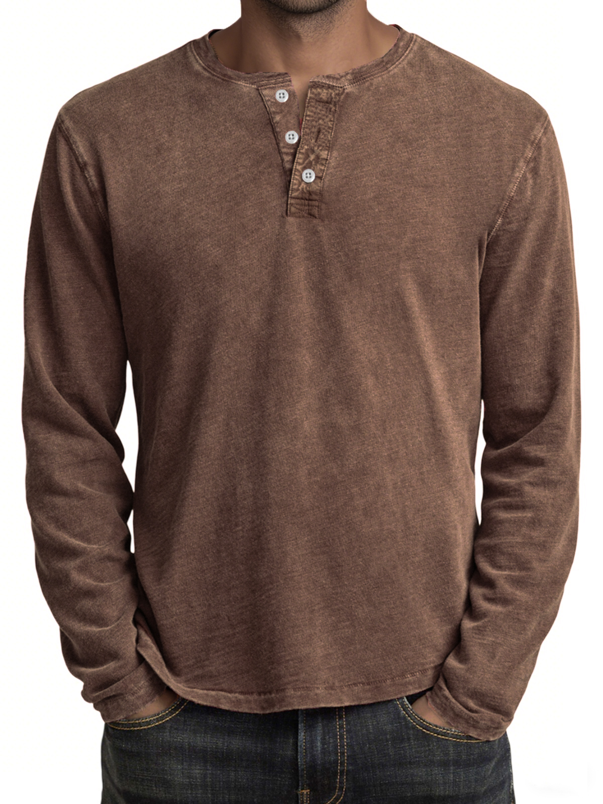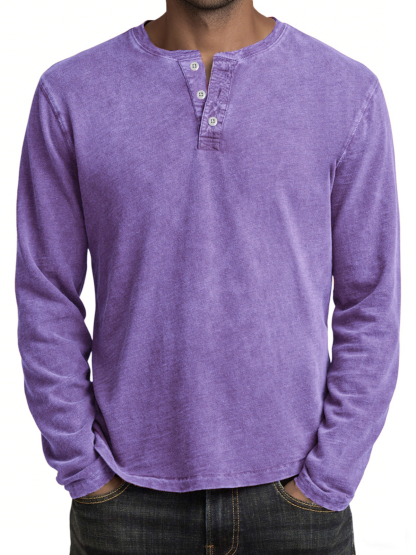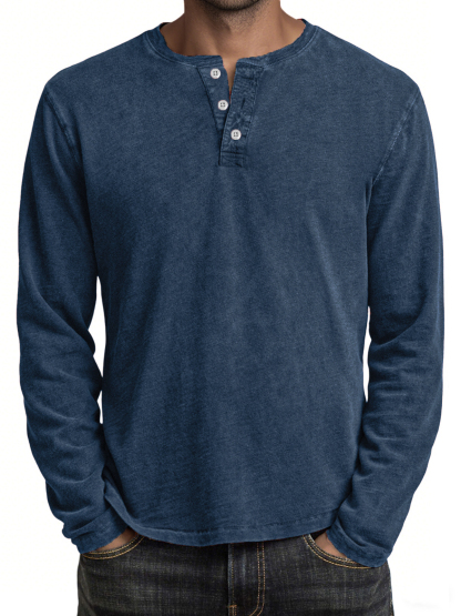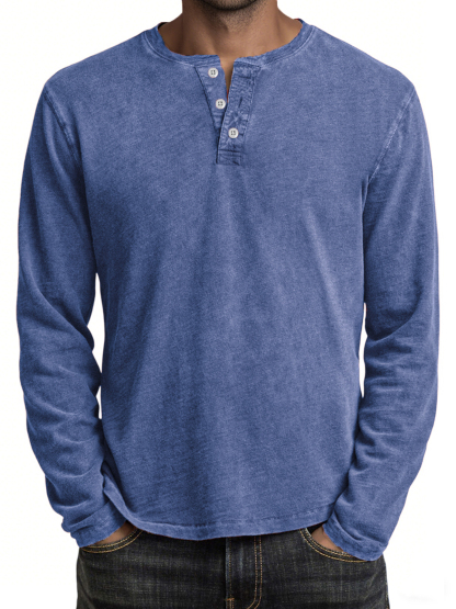 Men's Vintage Distressed Button Casual Basic Henley T-Shirt Top