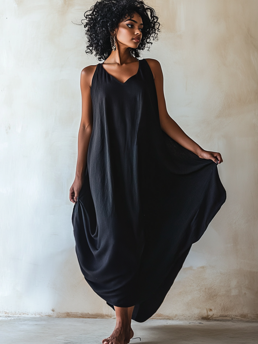 Sleeveless Linen Black Dress