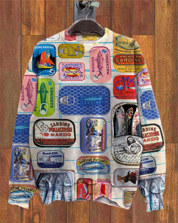 Unisex Vintage Sardines Fish Can Loose Sweatshirt