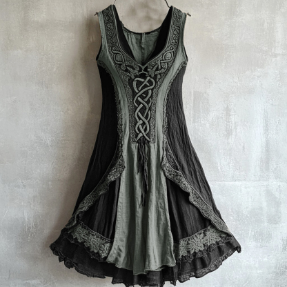 Viking Tribal Celtic Knot Lace Art Linen Tank Dress