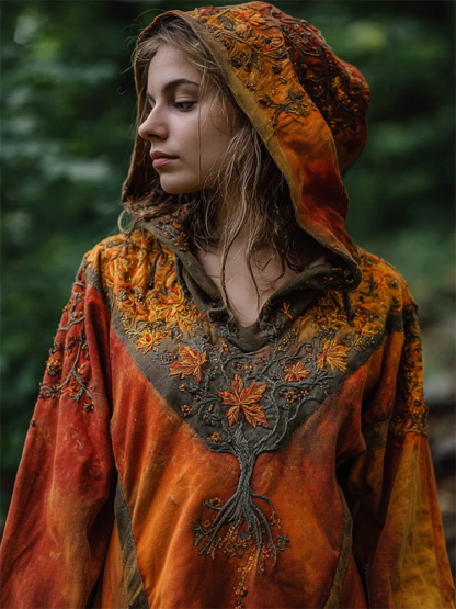 Vintage Fall Leaves Tree Of Life Embroidered Dyed Hoodie