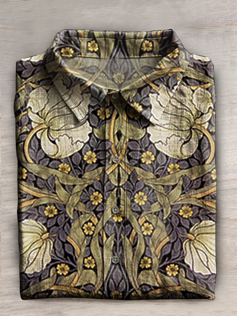 Vintage Floral Print Casual Cotton Shirt
