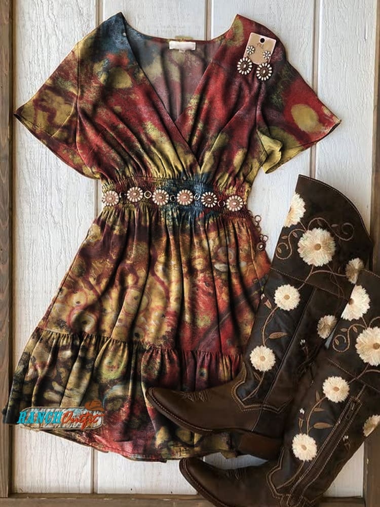 Vintage Print Casual Western Dress