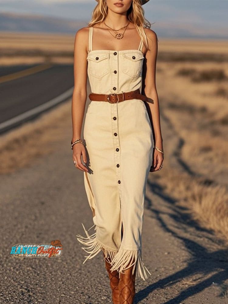 Women's Country Boho Chic Denim Pocket Maxi Dress