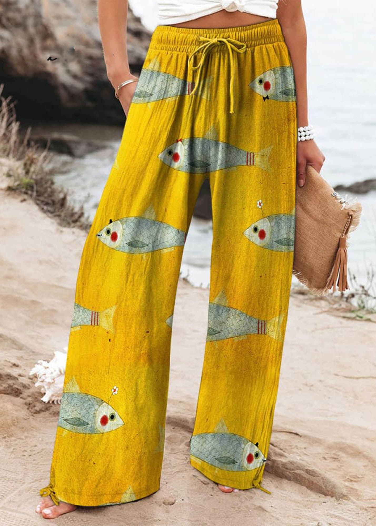 Women's Vintage Fish Art Print Cotton And Linen Casual Pants