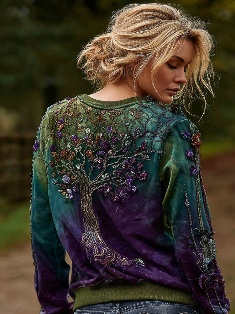 Women's Vintage Viking Tree Of Life Art Gradient Comfortable Crew Neck Sweatshirt