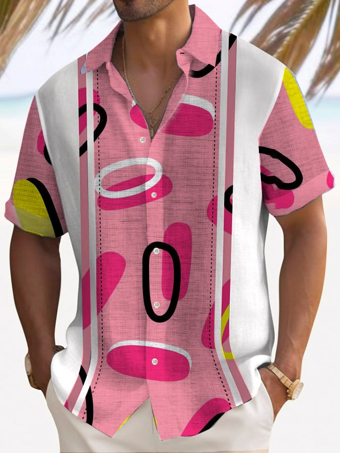 Fashion Holiday Contrast Printed Men's Short Sleeve Shirt