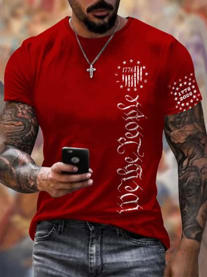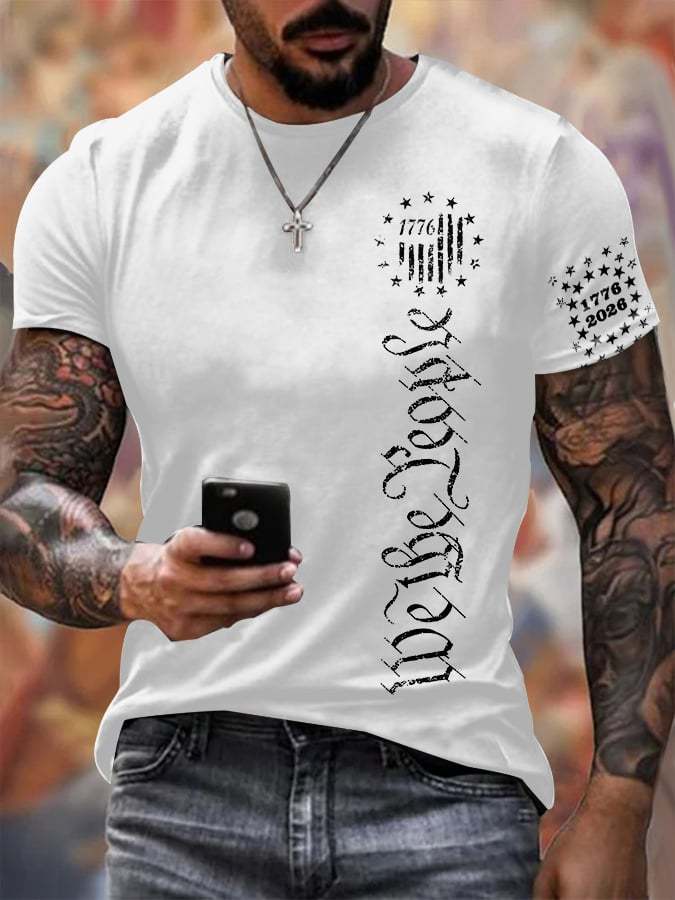 Men'S Retro 1776 - 2026 We the People American Flag Print T-Shirt