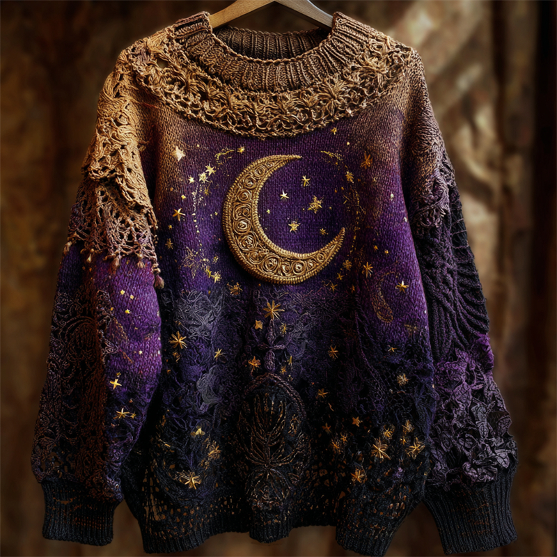 Mystical Celestial Glitter Moon & Stars Cozy Knit Sweater