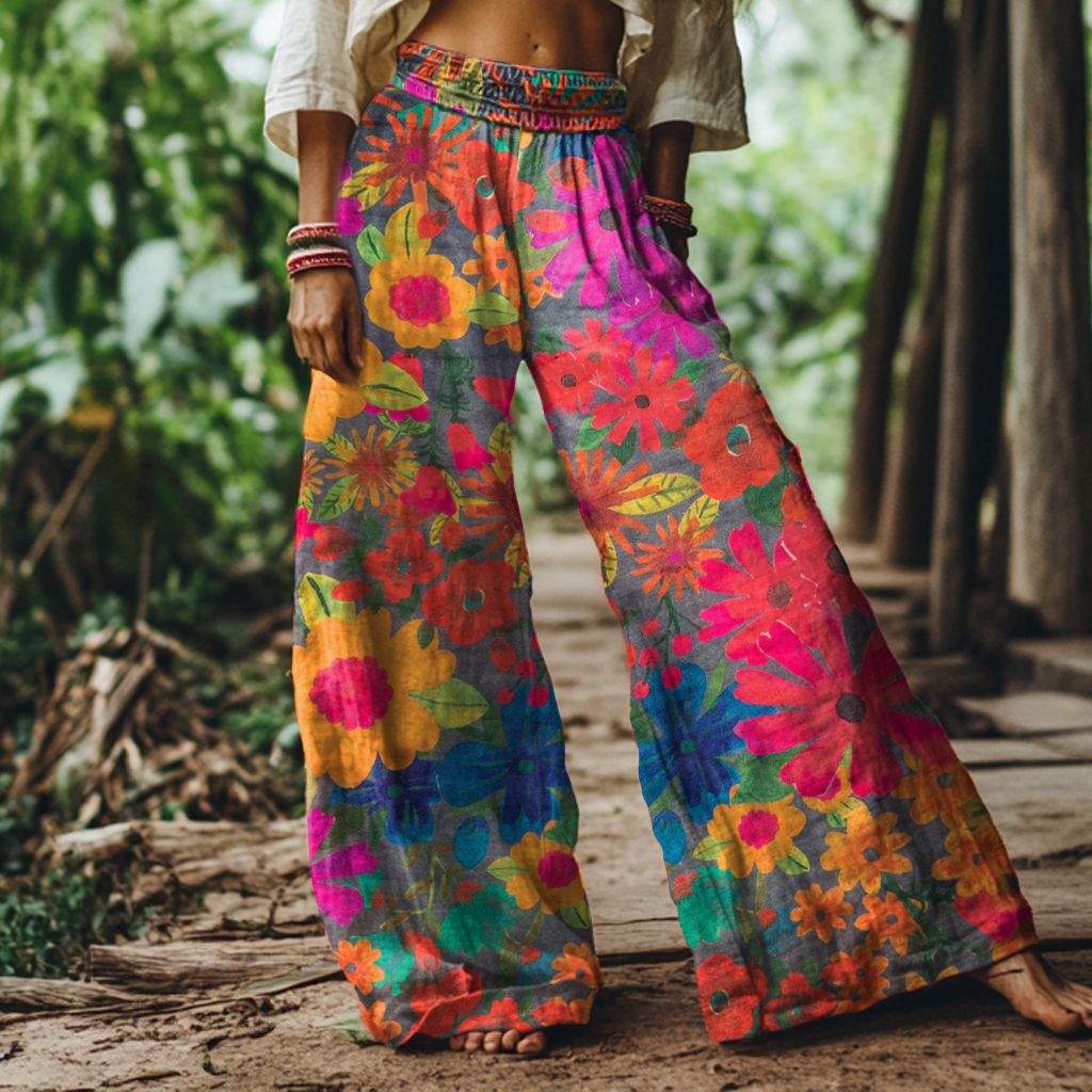 Vintage Bohemian Floral Print Loose Wide-leg Pants