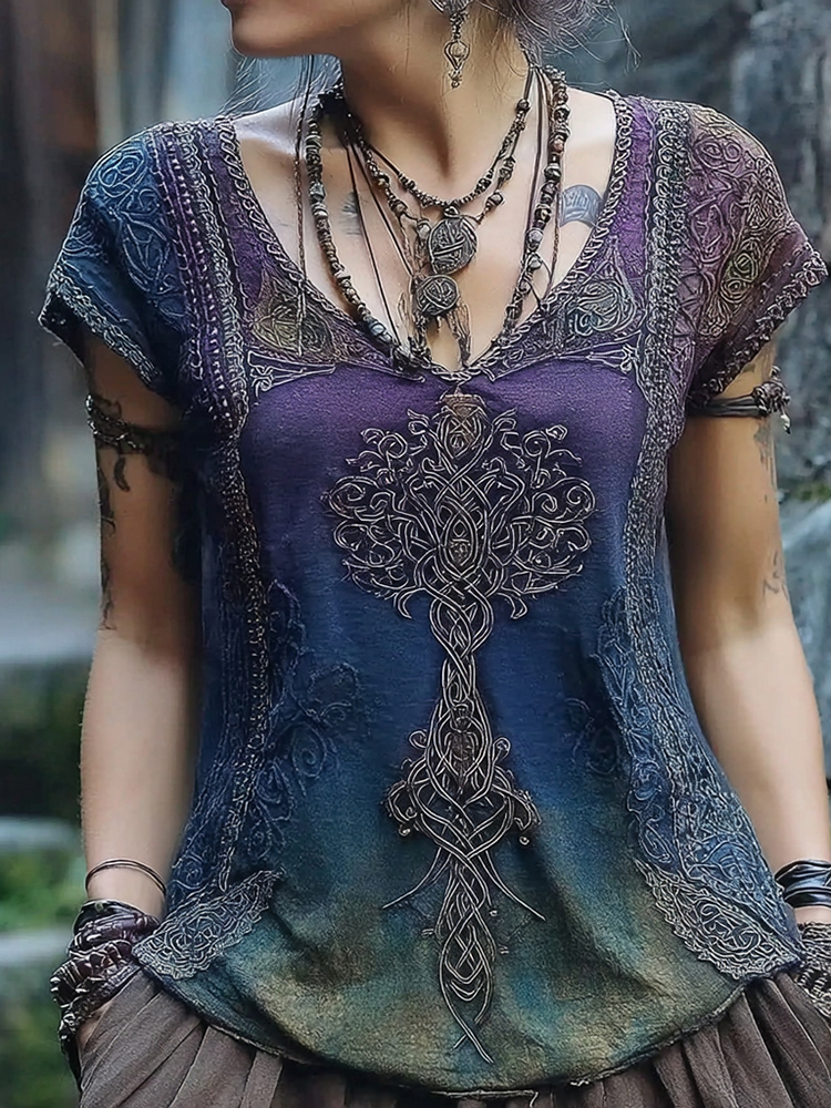 Vintage Viking Tree Of Life Gradient Art V-neck T-shirt