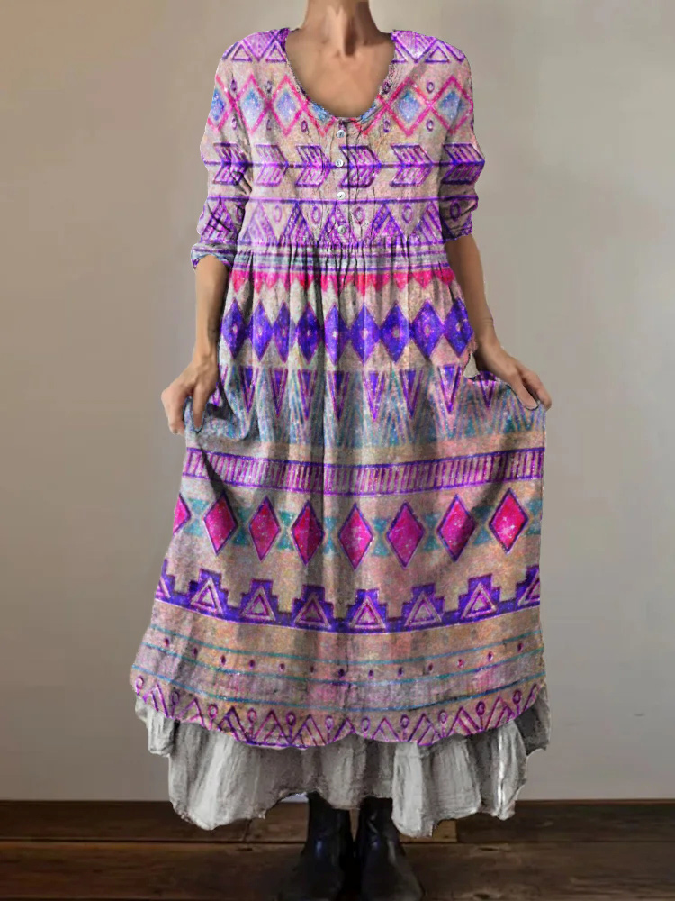 Women's Art Painting Hippie Vintage Print V-Neck Dress
