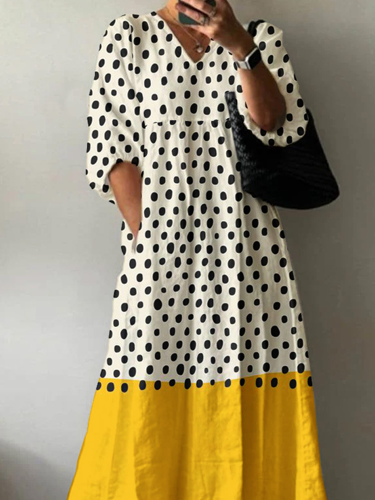 Women's Polka Dots Pattern Holiday Floral Pattern Cotton Dress