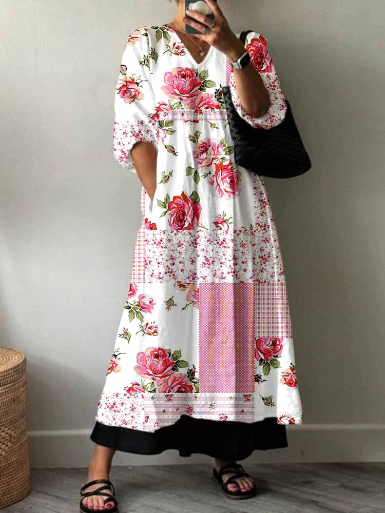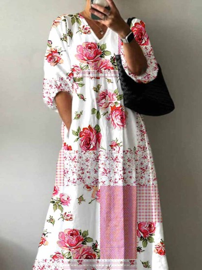 Women's Rose Flower Floral Pattern Cotton Dress