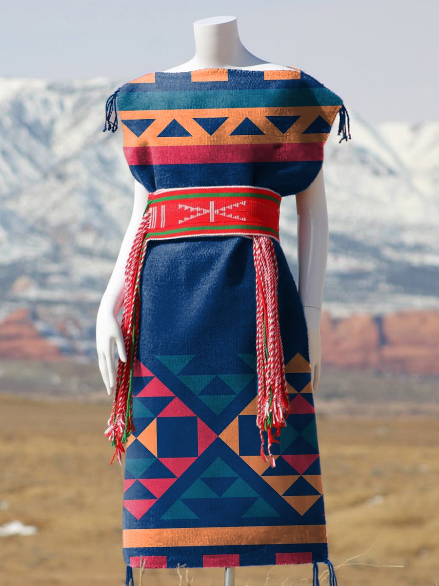 Women's Vintage Aztec Print Suspender Maxi Dress