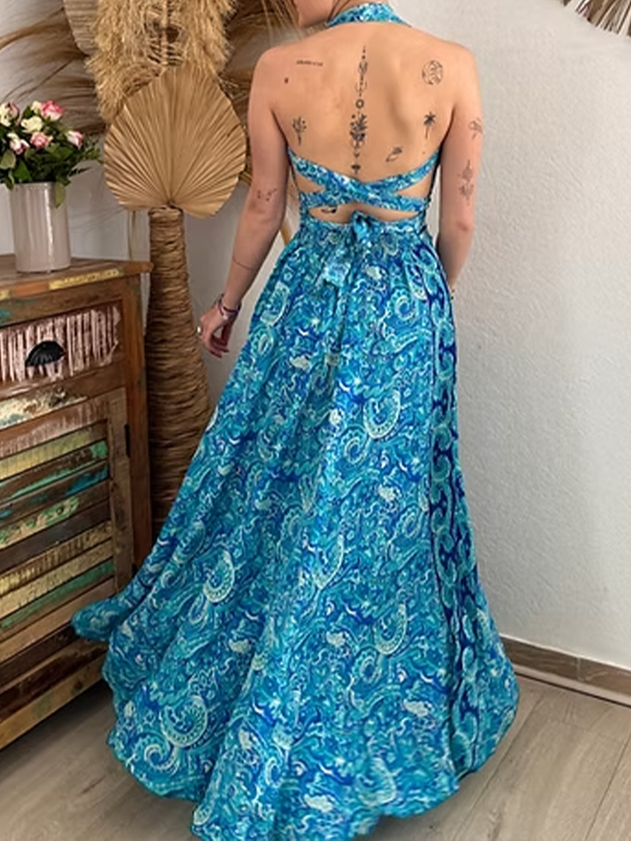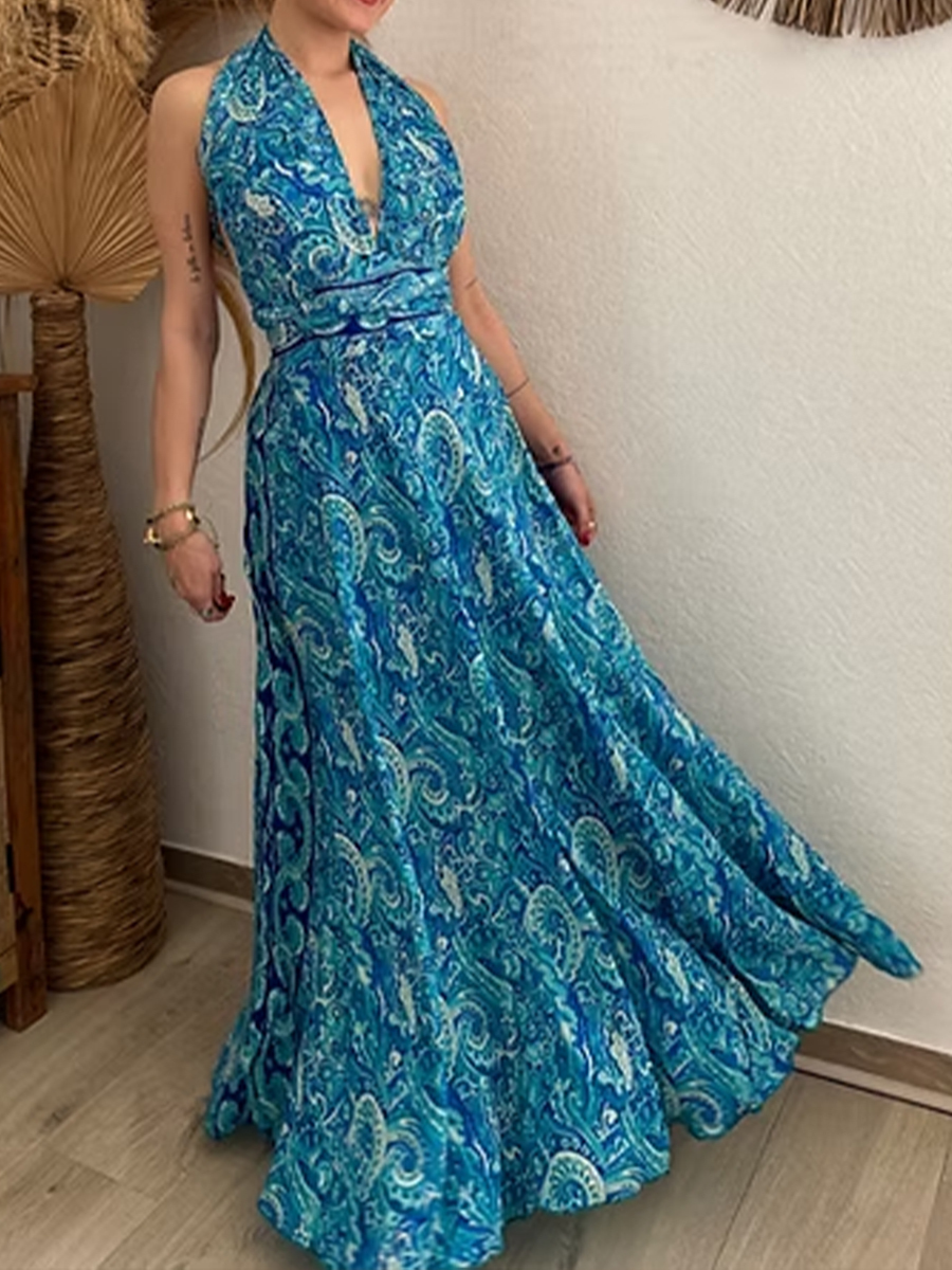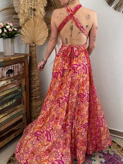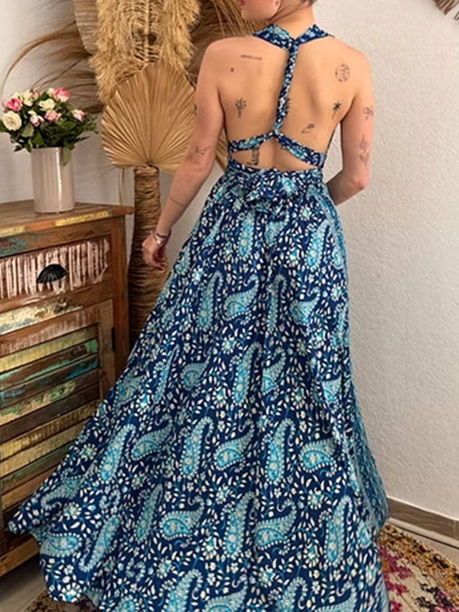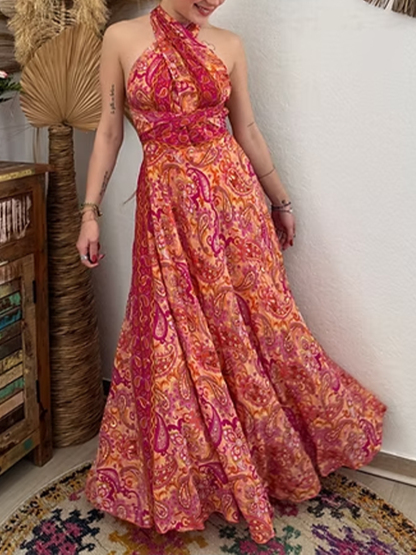 Women's Vintage Paisley Print Cotton Maxi Dress