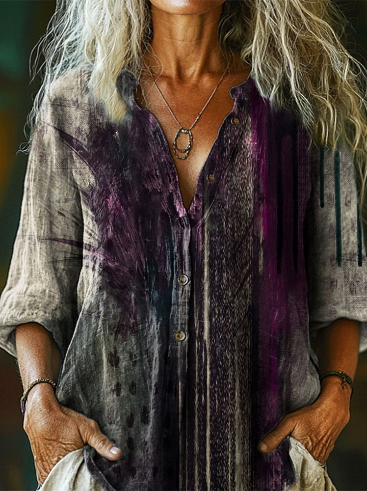 Women's Retro Abstraction Art Print Casual Cotton Linen Shirt