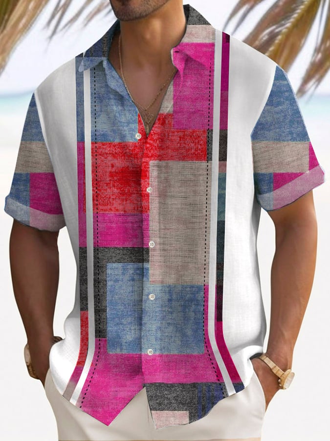 Fashion Holiday Contrast Printed Men's Short Sleeve Shirt